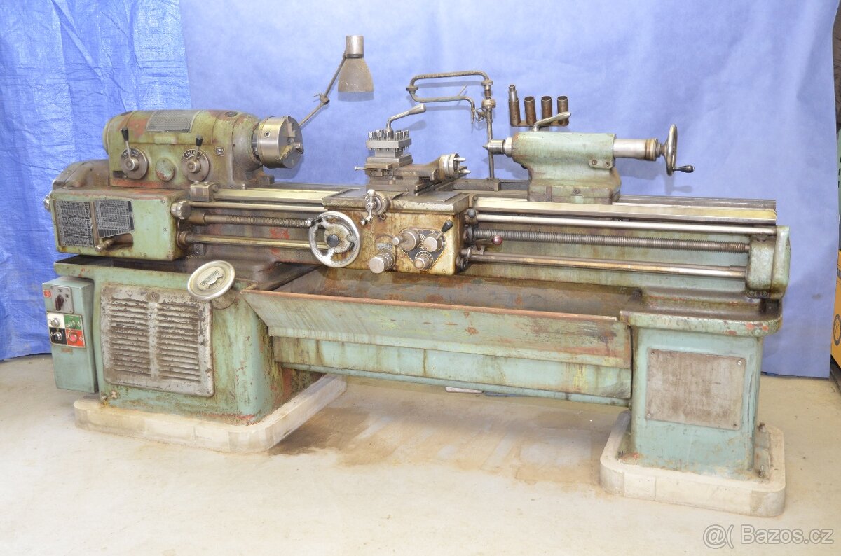 soustruh SV18 točná délka 1250 mm, oběžný průměr nad ložem 380mm, váha 1850 kg, půdorys 950 x 3020 mm legendární nesmrtelný litinový soustruh, příručka s výkresovou dokumentací, velmi zachovalý, nevyběhané lože.