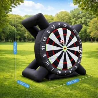 Prodám profesionální nafukovací terč na fotbalové šipky (Football Darts) vhodný pro eventy, firemní dny, festivaly, sportovní akce, školy i rodinné oslavy. Parametry: Výška: 3 m Šířka: 3 m Hloubka: cca 1,4m Materiál: odolné PVC Rychlé nafoukání pomocí elektrického dmychadla Balení obsahuje: 8× fotbalový míč na suchý zip Kotvící kolíky Lana Zátěžové pytle Pumpa Opravné záplaty Ruční nářadí na kolíky Výhody: Vysoká ziskovost při pronájmu (ideální na víkendové eventy) Jednoduchá obsluha Silný vizuální efekt – přitahuje pozornost Vhodné pro děti i dospělé Možnost osobního odběru nebo dopravy.