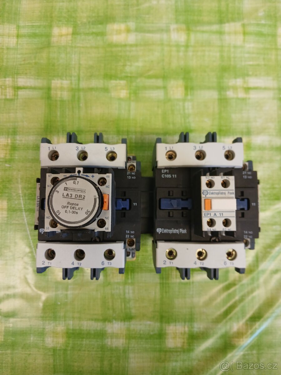 Prodám 2ks stykače EP1 C105 11 s mechanickou blokádou zapnutí obou stykačů současně s nastavením času přepnutí.
