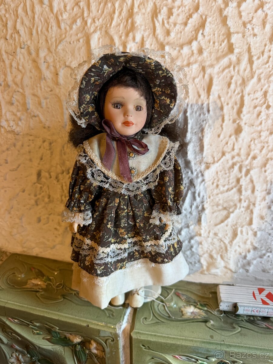 Prodám panenku s keramickou hlavou a rukama na stojánku. Výška je 31 cm