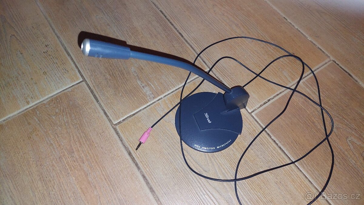 Prodám desktopový mikrofon zn. Trust s vysokou citlivostí, výškově nastavitelný v otočném kloubu. Připojení 1,8 m dlouhým kabelem přes 3,5 mm jack konektor. Mikrofon je jako nový, nepoužívaný. Cena jen 100 Kč. Možno vidět/převzít osobně v Liberci a nebo zaslat přes Zásilkovnu/Balíkovnu