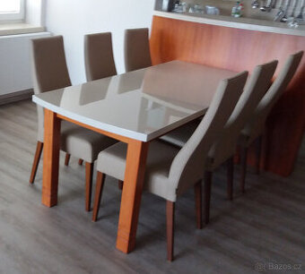 Prodám použité a velmi pěkné 6ks kožené židle a stůl