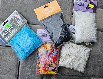 Silikonové gumičky v zářivých barvách pro tvorbu originálních vzorů z koňské hřívy. Vhodné na závody či pro ukrácení dlouhé chvíle se svým koněm. K dispozici v několika krásných barvách. Zabaleno v plastikovém sáčku o počtu gumiček cca 450-500 ks. Nové, nepoužité. Tyrkysové - 4 ks - 80,- Bílé HH - 1 ks - 80,- Černé QHP - 1 ks - 60,- Bílé QHP - 1 ks - 60,- Barevné QHP - 2 ks - 60,- Poštovné 130 Kč PPL domů na adresu nebo PPL Parcelshop/box 100,-. Platba převodem. Mrkněte i na další inzeráty.