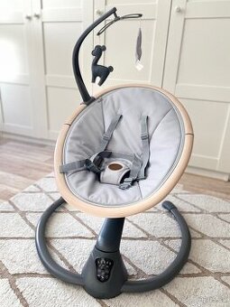 Lehátko jako nové. Dítě se v něm houpalo jen párkrát. Lehátko umožňuje nastavení pěti rychlostí houpání a časovač na 8, 15 nebo 30 minut. Lehátko můžete otáčet o 360°, abyste na sebe s dítětem viděli bez ohledu na to, kde se v místnosti nacházíte. Lehátko nabízí dvě polohy sklonu na spaní i na pozorování okolí. Hudební box s možností nastavení hlasitosti obsahuje 12 melodií a přírodních zvuků. Detektor pohybu automaticky zapne uklidňující houpání, když se dítě probudí a začne plakat.