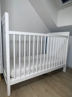 Dětská Postýlka polohovatelná , matrace, hnízdečko, dečka, dva polštářky, 12 mantinelovych polštářku, povlečení Všechno v pěkném stavu, matrace použita minimálně medicott zdravotní a ortpedická vše využito pouze po dobu 6ti měsíců některé položky nebyly vůbec využity POUZE K VYZVEDNUTÍ SMIŘICE