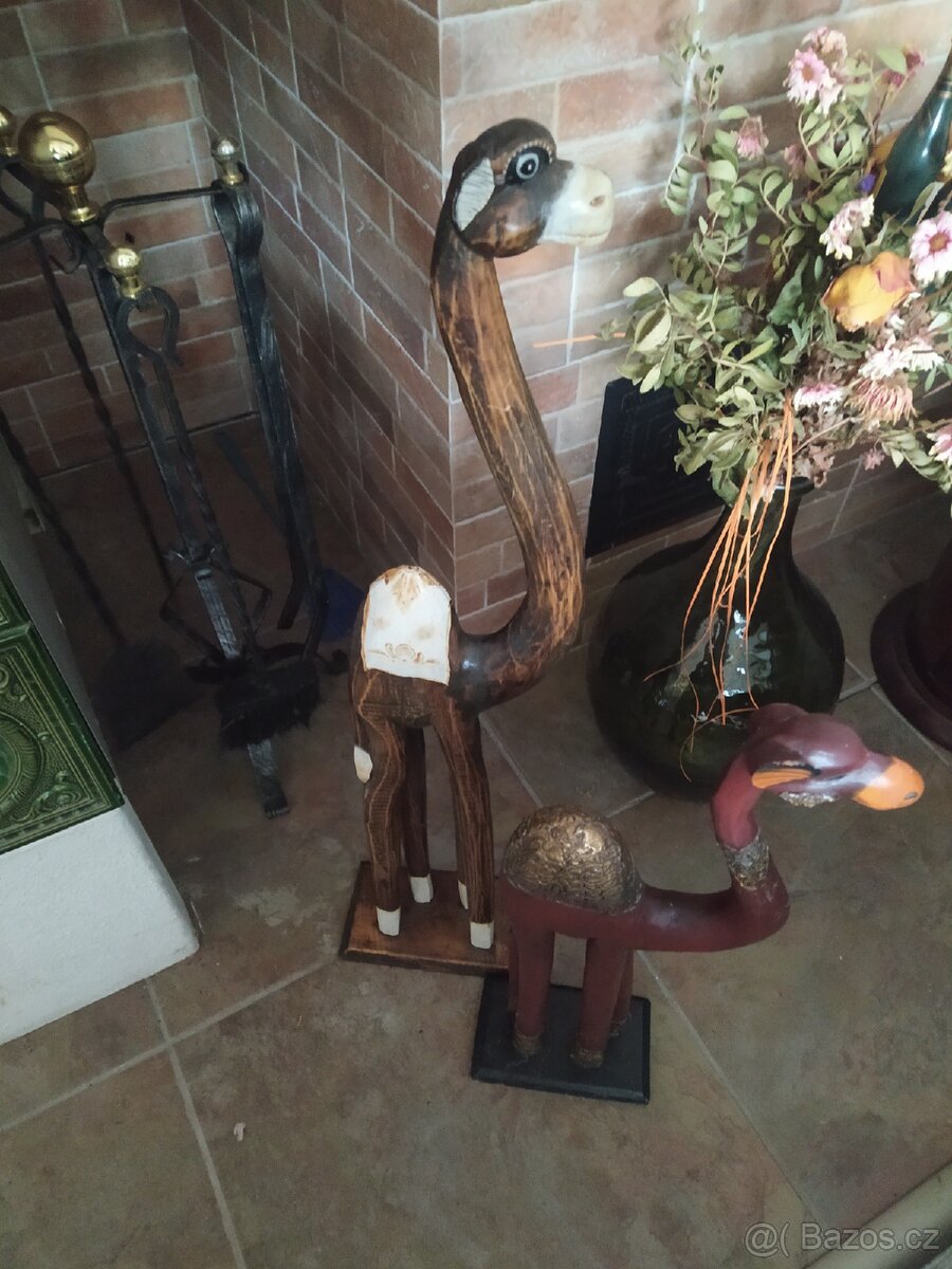 Prodám dva dřevěné velbloudy krásná dekorace menší je 60 cm za 400 větší je 80 cm za 500 Kč