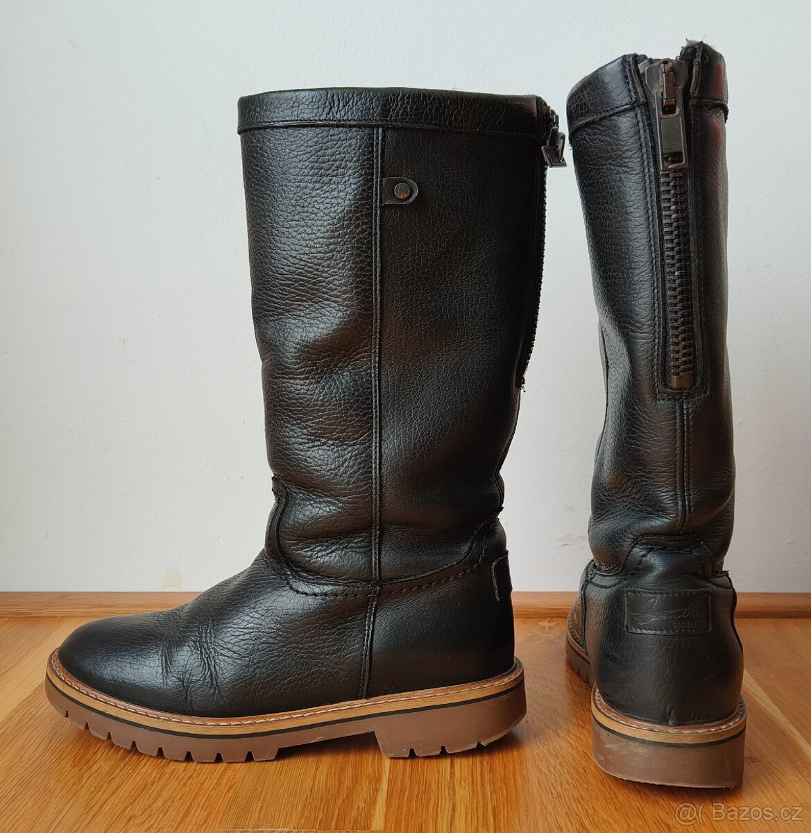 Kožené kozačky zateplené ve velmi dobrém stavu. Málo nošené. Protiskluzová podrážka. Černá barva. Velikost 36
