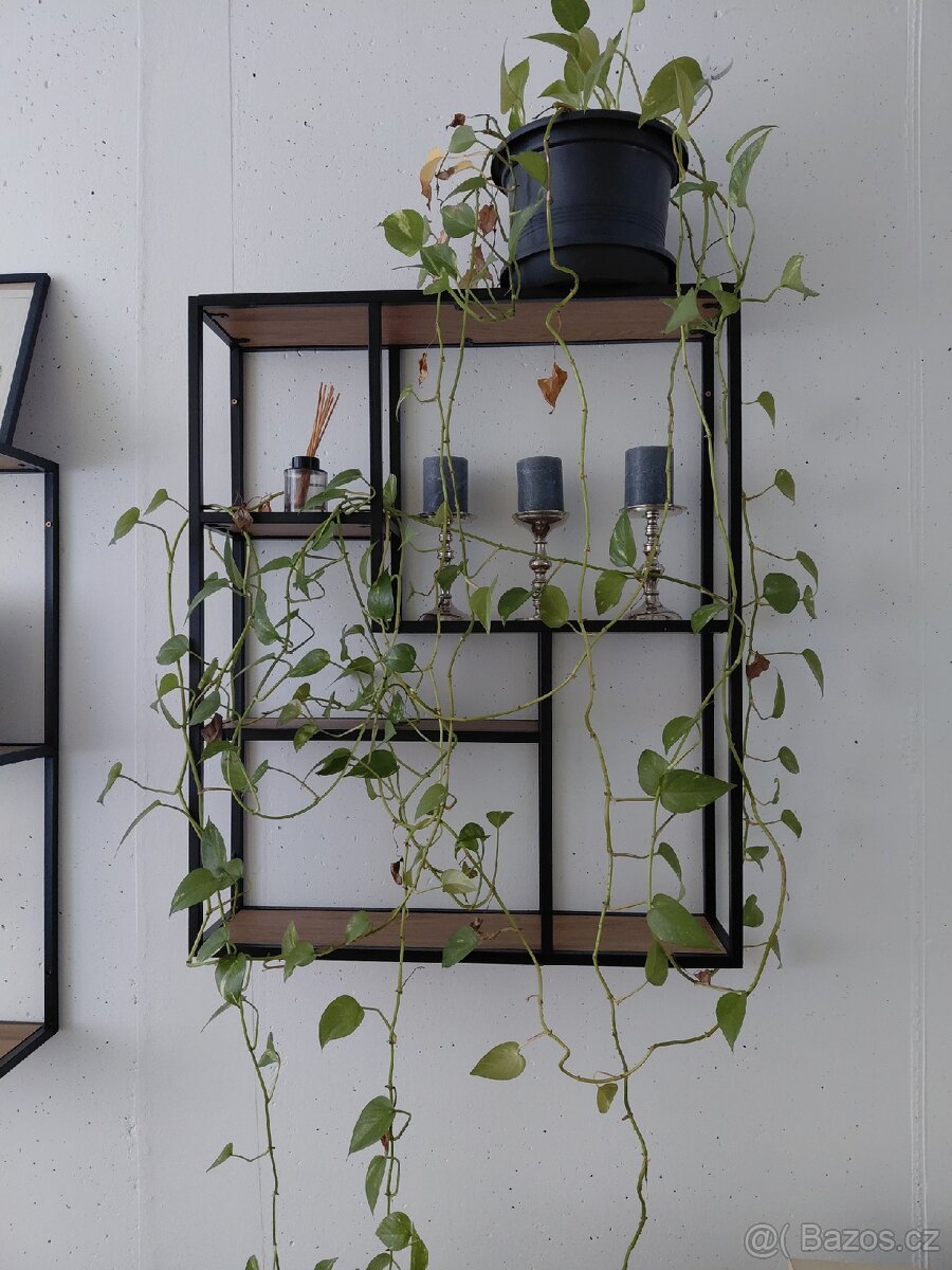 Černo-dřevěné nástěnné police Dvě k prodeji