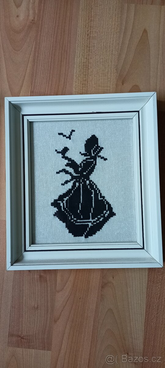 Prodám obrázky, vyšívaný vzor,3kusy,cena za jeden kus, velikost šířka 22cm, výška 25-2x, další šířka 23 cm, výška 27cm.