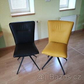 Velmi pohodlné a moderní židle 2 ks - NOVÉ - SILNÁ KVALITNÍ PRAVÁ KŮŽE - černá a žlutá. Kůže je velmi příjemná - pevná ale měkká s kovovými podstavci. Vhodné do jídelny, kuchyně, nebo pracovny. Původní cena za kus 499,- Euro což je 12500,- Kč. Nyní cena za kus 2980,- Kč. Vánoční sleva 300,- Kč Dovezu v Plzni a okolí zdarma, nebo za cenu poštovného do Prahy a na trase Plzeň - Praha.