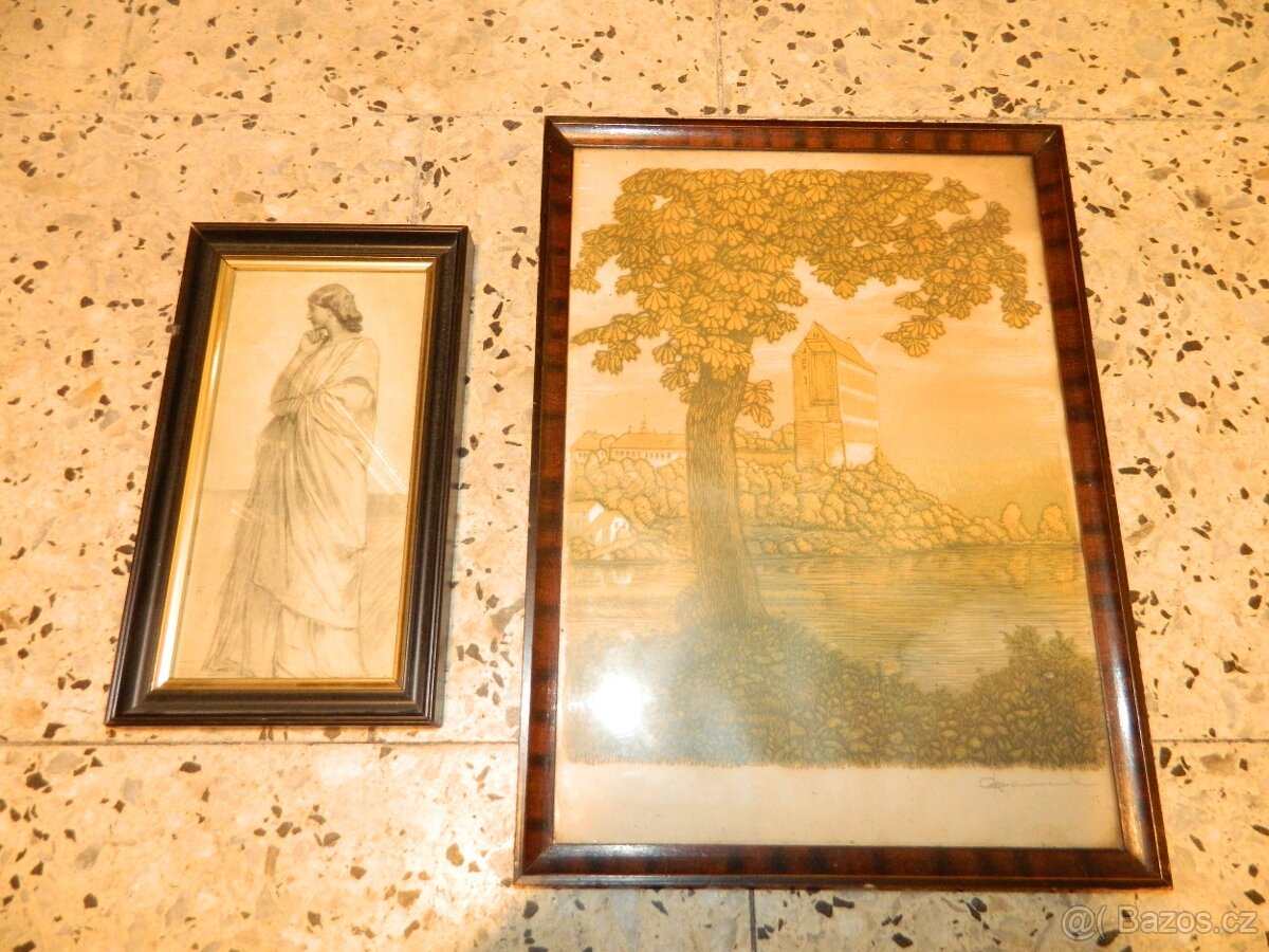 Prodám staré obrázky viz.foto.Na vetším obrázku je zámek Plumlov.Rozměry:délka:24,7cm ,výška:33,7cm, šířka:1cm.Menší obrázek:délka:12,5cm,výška:21,7cm,šířka:2cm.Cena za oba je 500kč.