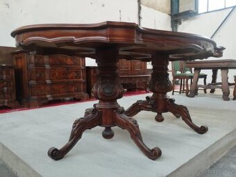 Krásný jídelní stůl, dvě vyřezávané nohy. 6 židlí. Krásný stav. Rozměry stolu: délka 204 cm, šířka 120,5 cm, výška 79 cm. Možnost přepravy