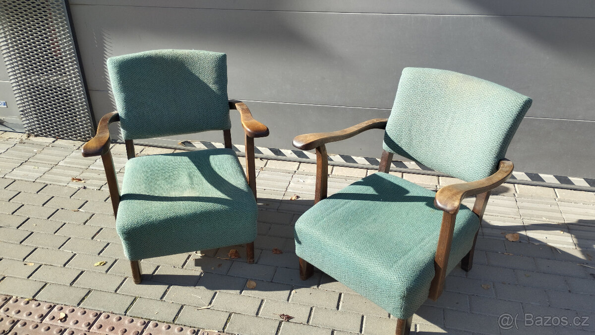 Prodám dvě zachovalá, pevná křesílka s elegantním provedením područek. Cena za komplet 4,2 tis.