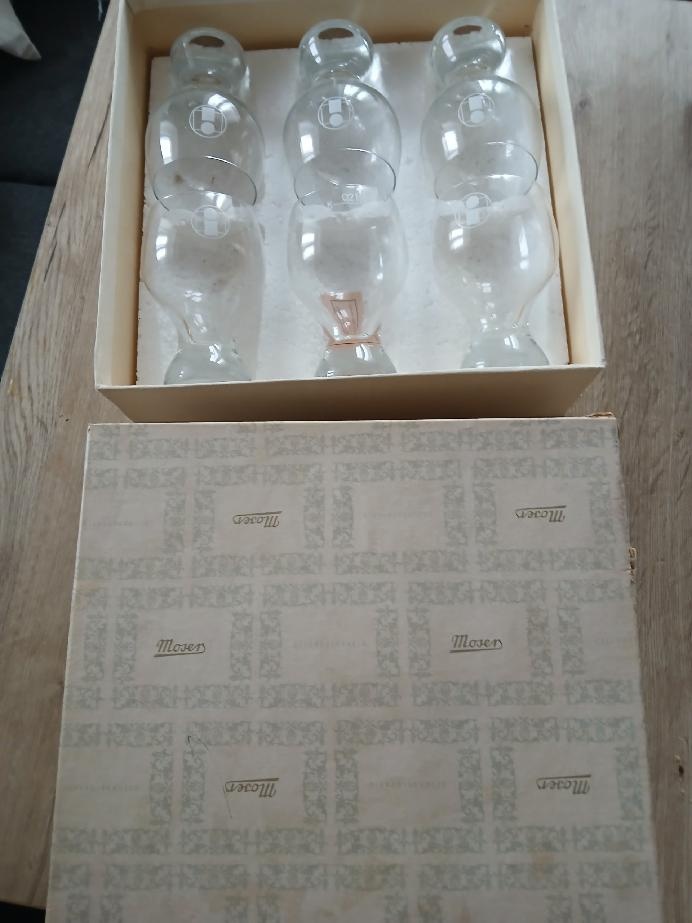 Moser – sada 6 ks křišťálových sklenic 0,2 l (originál) Prodám originální sadu sklenic Moser, 6 kusů. Karlovarské sklo, n. p., Karlovy Vary – Dvory kontrolní lístek 1. kvalita objem 0,2 l, silné dno původní krabice (stav odpovídá stáří) Stav: sklo velmi dobré, bez otluků krabice jetá, ale původní vhodné na lihoviny / sběratelsky / reprezentaci Prodávám pouze jako celek. Osobní odběr nebo pečlivé zabalení po dohodě. Cena: 3 900 Kč