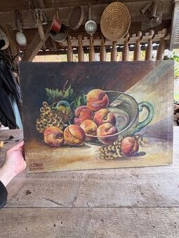 Obraz – zátiší s broskvemi a hrozny, E. Donda (1943)