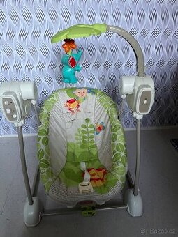 Prodám houpací lehátko pro miminko, lehce pohupuje, vibruje, hraje různé melodii. Lze i připevnit bez houpání jako lehátko./sedátko/.V ceně je i dětská hračky na obrázku.
