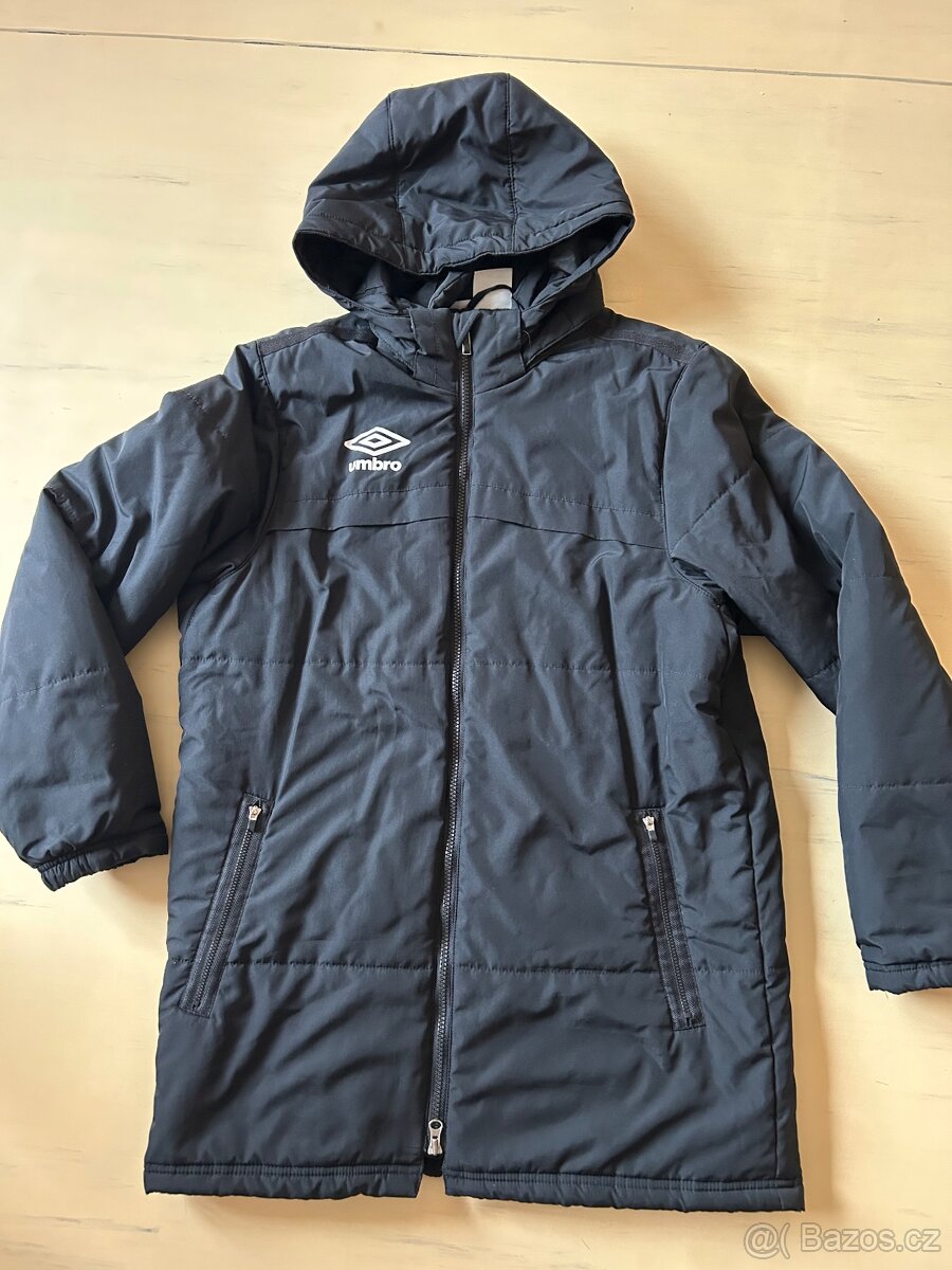 Prodám dámskou bundu Umbro, vel. M. š.54cm, d.78cm, rukáv od krku 72cm za 150Kč. Bunda je minimálně nošená, bez vad. Vhodná jako přechodová bunda nebo do mírné zimy. Má kapuci, zapínání na zip a kapsy na zip, barva černa.