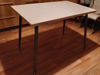 Prodám jídelní stůl 110x70 cm, deska bílá - lesk. Nohy kovové pochromované. Pouze osobní odběr.