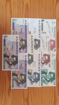 Nabizim sadu 9 kusů bankovek Specimen zkušební tisky Ludwig van Beethoven z toho je 1× set 3 bankovek tisk STC 1× set 6 bankovek tisk De La Rue Velmi pěkná sada testovacich bankovek Specimen