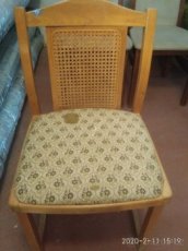 Jedna jídelní židle, lehce poškozený sedák (viz foto), 150,-- Kč. Osobní odběr Most, okres Rakovník, Praha západ (Chýně)