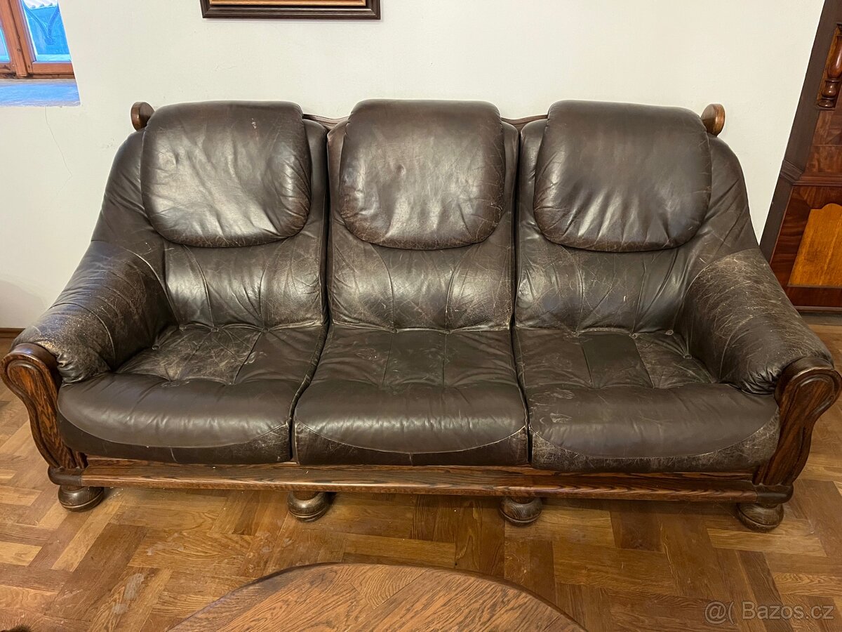 Bytelná kožená souprava, nerozvrzaná a pohodlná 1x sedačka, 2x křeslo