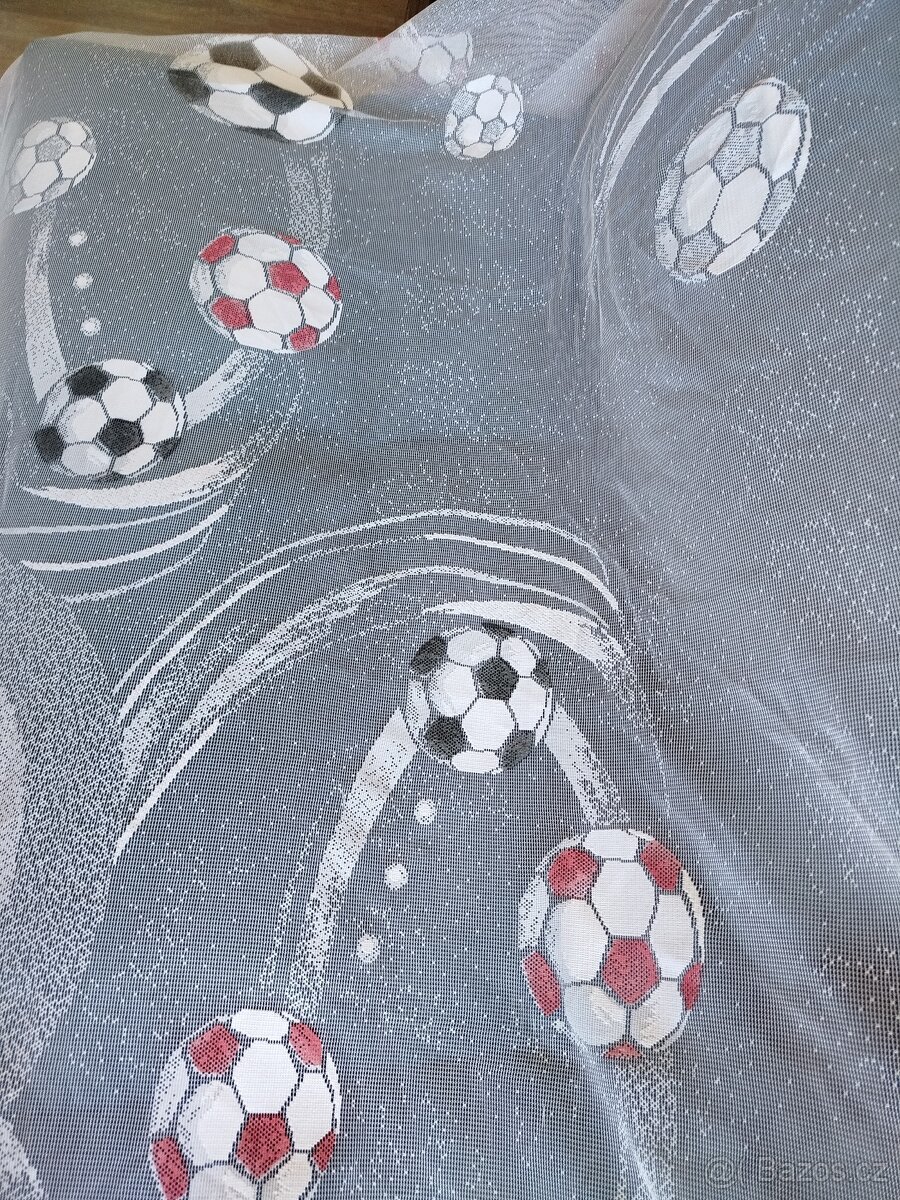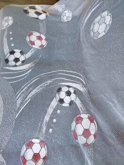 Prodám záclonu s motivem fotbalový míč. Rozměry Š.347,V.162 cm.