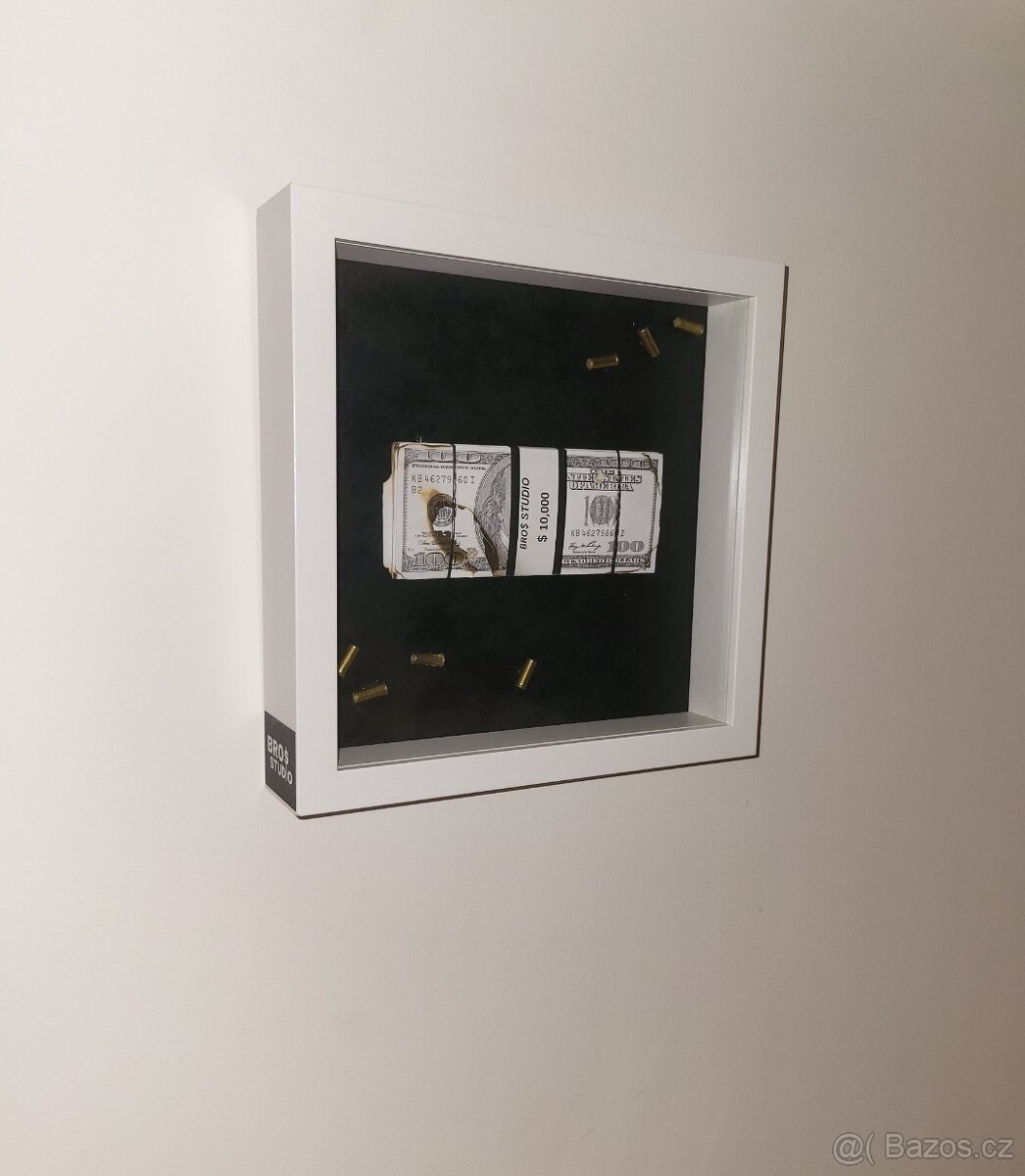 Predám tieto 3D obrazy s motívom peňazí. Sú kvalitne spracované s netradičnou tématikou. Cena za oba: 5€/125kč Rozmery: 25,5 x 25,5 x 5 cm Váha cca 1kg