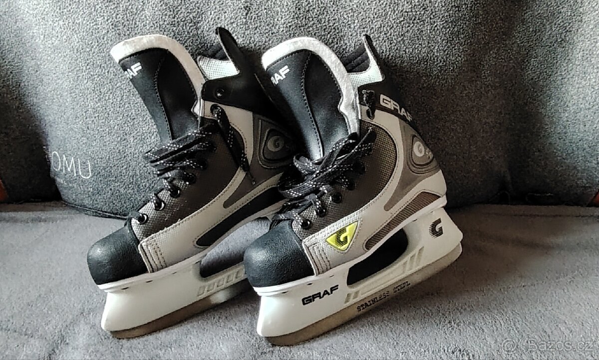 Nabízím dětské zimní brusle zn. GRAF Superior 101. Velikost EU 39. Brusle byly použité párkrát loňskou zimu, jsou ve velmi dobrém stavu. Viz foto. Cena 850 Kč. Preferuji osobní předání Praha a okolí (Jesenice, Roztoky). V případě zájmu VOLEJTE. Pokud nezvedám, zanechte SMS a ozvu se zpět co nejdříve.