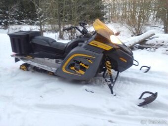 Nabídnu tento super stroj na zimní radovánky, motor 2 - takt, oddělené mazání olejem, vzduchem chlazený motor, ruční startování táhlem, převodovka variátor, najeto 6 000 km, nemá akumulátor, váha 200 kg, přepnutí tlačítka na zpátečku, vyhřívané rukojeti a sedlo, pro 2 osoby, za spolujezdcem bedna na všechno možné, která zároveň slouží jako opěrka, funkční přední a zadní světlo, zadní tažný hák, náhradní klíče, prodává automechanik, vše na tom vysvětlím