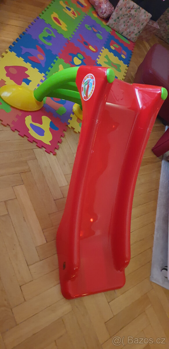 vyrobená z kvalitního a pevného plastového materiálu ke skluzavce je možné připojit hadici a udržovat klouzací část mokrou stabilitu a pevnost podporuje i plastová podpěra jízda na dětské skluzavce rozvíjí smysl pro koordinaci pohybů, rovnováhu a posiluje svaly vhodné pro děti od 2 let Rozměry: délka žebříku: cca 90 cm, délka klouzací části: cca 120 cm, šířka klouzací části cca 42 cm. Skluzavku jsme používali jen doma.Je jak nová.
