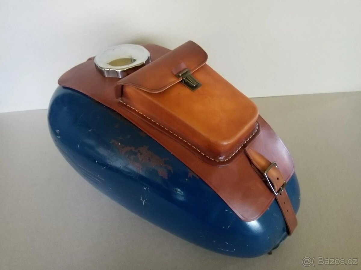Brašna na nádrž Panelky. Vyrobena z přírodní světlé, tmavě hnědé nebo černé hovězí kůže.