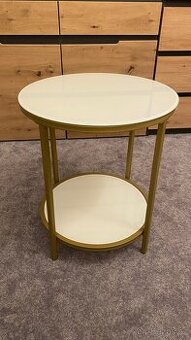 Bílé odkládací desky jsou skleněné. Výška 50cm, šířka 45 cm.