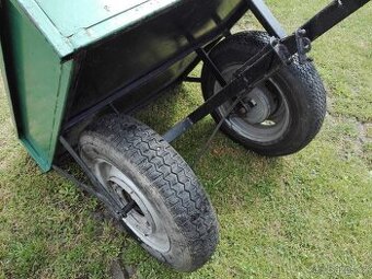 kvalitni vozik s bržděnou napravou, korba šiřka 90cm, delka korby 105cm, zadni čelo sklopné, velka kola.