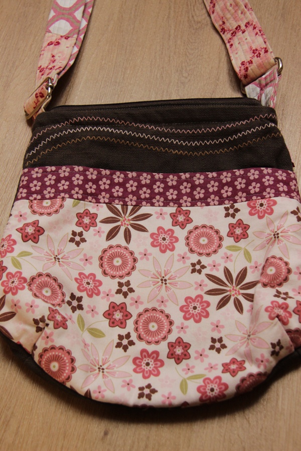 Prodám kabelku. Šitá na zakázku na Fléru. Párkrát použitá, pěkný stav (úklid ve skříni :-) Popruh nastavitelný, přední kapsa, velká vnitřní kapsa, dvě vnitřní kapsičky, zapínání na zip, hnědá látka je hrubší. Rozměry vnější v nejširším bodě: 31 x 29 cm. PC 699 Kč.