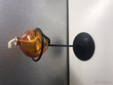 Aroma lampa je nová, nepoškozená, nepoužitá Železný stojan/držák Skleněná baňka s knotem, kam je dává olej Dovoz z Německa Rozměry: výška 21cm, průměr stojanu dole 9cm