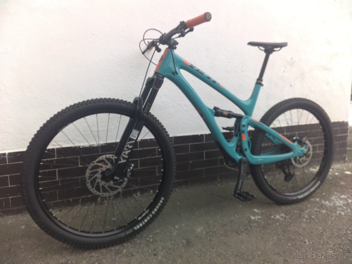Prodám lehké enduro Yeti,vel.L(na fotkách nastaveno na cca 180cm.)Rám carbon TURQ,zdvih 150mm.Tlumič Fox Float Performance.Vidlice RockShox Yari,zdvih 160mm.Elektrické řazení SRAM AXS T type 12speed.Kliky SRAM XX1 carbon.Brzdy Shimano XT.Náboje Formula boost,ráfky Mach1 Trucky 30,pláště Specialized 29x2,35/27,5x2,35".Sedlovka Merida,zdvih 150mm.sedlo Fizik.Řiditka Azonic,představec a gripy Race face.Rám a kliky jsou použité v bezvadném stavu.Ostatní komponenty,včetně převodníku jsou nové.Hmotnost kola 14,5kg.Info přez telefon.