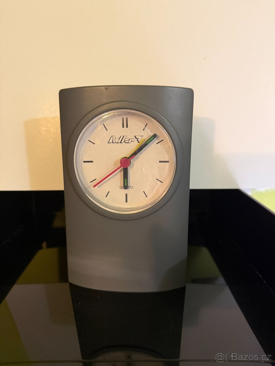 Prodám retro budík ocelové barvy, značky Adler, plně funkční.