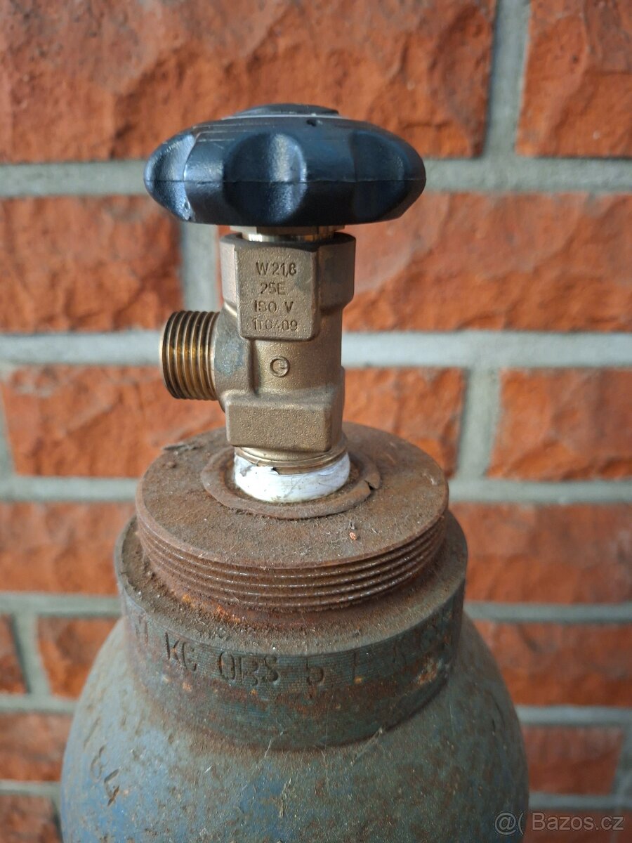 Prodám tlakovou láhev na kyslík. Nový ventil. Celková výška cca 57cm.