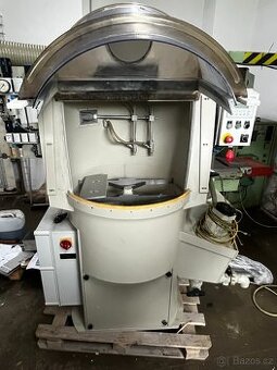 FIREX – rotační mokrá mikro-tryskací kabina (Vapour Blasting / Wet Blasting) Vysoce kvalitní švýcarská rotační mokrá tryskací kabina FIREX, vyrobená v roce 2008, původně používaná pro výrobu přesných komponent v hodinářském průmyslu. Stroj je určen pro jemné a rovnoměrné mikro-tryskání povrchu bez změny geometrie dílů. Technologie mokrého tryskání (vodní suspenze abraziva) umožňuje velmi precizní saténování, matování a sjednocení struktury povrchu. Hlavní vlastnosti: otočný unašeč (karusel) pro rovnoměrné opracování dílů 2× pohyblivá tryska recirkulace média s filtrací kalu automatické časové cykly pneumatické ovládání 3× frekvenční měnič Hitachi L200 (ventilátor, pohon, otočný mechanismus) průmyslové řízení 24 V DC (PULS) Vhodné použití: hodinářství a mikromechanika jemné saténování nerezu, mosazi, titanu dekorativní povrchové úpravy příprava povrchu před galvanickými povlaky přesné strojní díly s vysokou hodnotou Stav: Stroj je ve velmi dobrém technickém stavu, pln