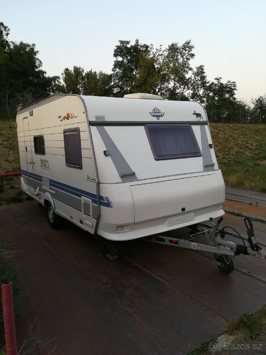 Prodám karavan Hobby de luxe 440 sfe pro 4 osoby, rok 1997. Na svůj rok velmi hezký, čistý (i střecha) a zachovalý karavan s kompletní výbavou kterou si většina zákazníků přeje. Hobby má předstan s boky, předek volný, kolíky, nahradí tyč k předstanu, zavětrování podvozku, elektrický bojler, sprchu, topení s rozfukem. Satelit na trojnožce samostatně stojící vedle,výhoda je že se dá postavit na místo kde je dobrý signál, televize, dvě bomby na plyn 11kg, jedna prázdná, druhá plná.Opravdu hezký, kompletní karavan v originálním stavu. Hmotnost: 1030-1350 Kg Délka bez oje: 490 cm Délka s ojí: 600 cm Šířka: 230 cm PŘEDNÍ ČÁST KARAVANU: Ložnice Francouzská postel Koupelna-kazetové WC, odtoková vanička, sprcha Toaletní koutek s umyvadlem a zrcadlem Možnost oddělení posuvnými dveřmi STŘED KARAVANU: Kuchyň-tříplotýnkový plynový vařič, dřez, trojkombinovaná lednice ZADNÍ ČÁST KARAVANU: Sezení s jídelním stolem Možnost rozložení pro přespání dvou osob Topení Šatní skříň Příslušenství Mnoho úl