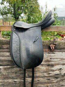 Prodám drezurní sedlo na širšího koně s rovnějším hřbetem. Komora 4, posedlí 17,5”. Míry viz foto. Sedlo je v dobrém stavu. Vyměněny zápinky, zkontrolováno sedlářem.