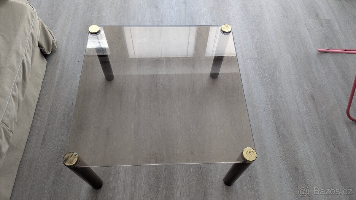 Skleněný stůl z tvrzeného skla. Rozměry 70x70x40. V dobrém stavu.