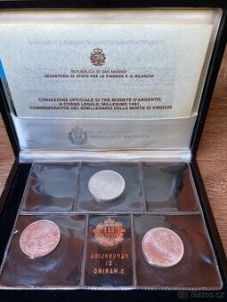 Prodám oficiální sběratelskou sadu tří stříbrných mincí vydanou Republikou San Marino v roce 1981. Sada byla vyražena k 2000. výročí úmrtí římského básníka Vergilia (Virgilio). Obsahuje: • 1× 1000 Lire stříbrná mince • 2× 500 Lire stříbrné mince • Oficiální etui a certifikát Vše ve velmi pěkném stavu, původní balení. Ideální pro sběratele mincí nebo jako investiční dárek.
