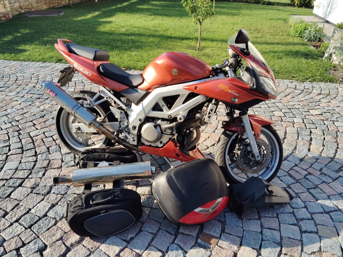 Prodám SV650S z rodinného důvodu.rv.2004 53kw najeto 62xxxkm loni jsem dával novou baterii výměna oleje a brzdové kapaliny a je nové ložisko řízení. Mám k tomu originální výfuk, držák SPZ a blinkry, je k tomu kufr a brašny Kappa včetně držáku.