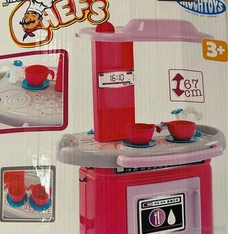 Prodám dětskou kuchyňku, velikost na fotce. Kuchyňka je plně vybavená a přidám další nádobíčko a pokrmy. Vše top stav. Včetně krabice.