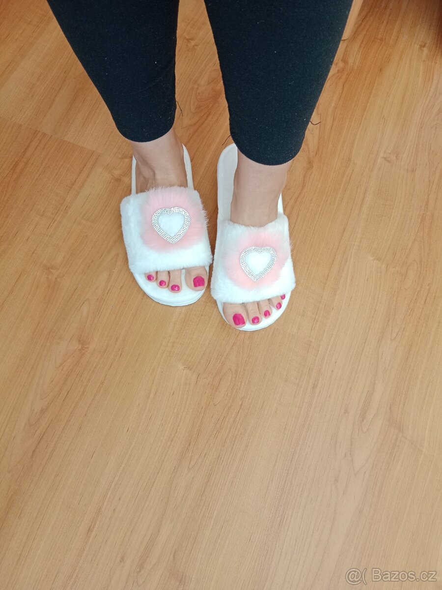 Damské hřejivé pantofle bíle se srdíčkem vel. 38. Úplně nové.
