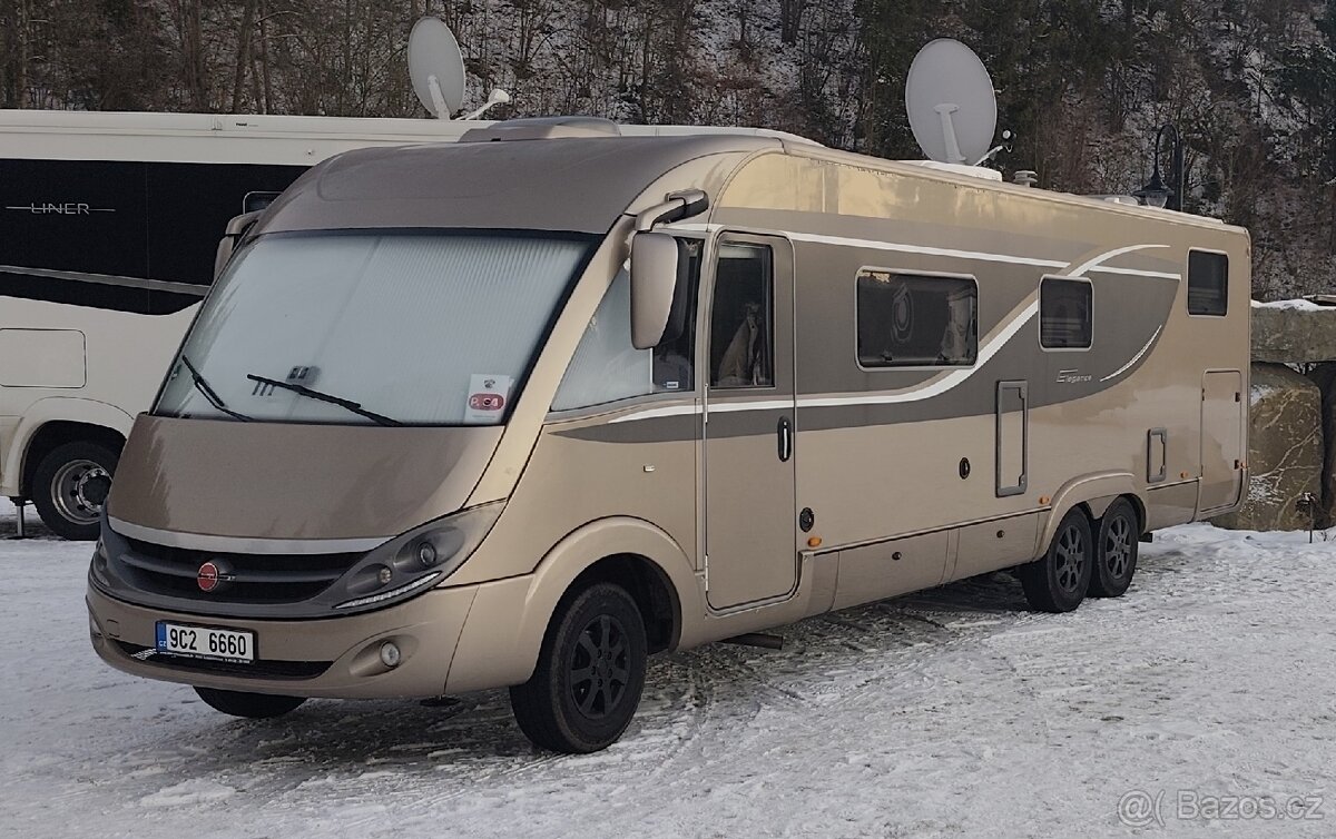 Bürstner elegance 810i na podvozku Fiat ducato 3.0 130kW, 5/2014, cca 60 500km ( stále v provozu ). 2 majitel v ČR, Délka: 9200 mm,Šířka: 2300 mm výška: 2850 mm + klimatizace Vnitřní výška: 1930 mm Počet míst na spaní: 5 - 6 Rozměry posteli: zadní: 198x77, 186x77 x středověká výplň, přední: 187x90; spouštěcí: 195x144 cm Plně integrovaný obytný automobil manualni prevodovka 6 rychlostních stupňů, Motorova klimatizace, přední sedadla otočná s vyhřívánim, celoroční pneu, tažné zařízení, 2x couvací kamera, tempomat, airbag řidiče a spolujezdce, denní svícení, al-ko podvozek nezávislé vzduchové pérování, 6 míst na jízdu, celková hmotnost 5000kg kategorie C 2x baterie 240Ah, 2 x solární panel , střešní klimatizace, velká garáž, okna s moskytiérami a zatemňením + vnitřní záclonky 3 x střešni okno +velké střešní okno nad sezením, LED osvětlení v celém prostoru s možností 6 různých zpusobu osvětlení, 6m markýza, satelit, 2x TV, sedadla otočná a výškově nastavitelná s vyhřívaná, venkovní sprcha