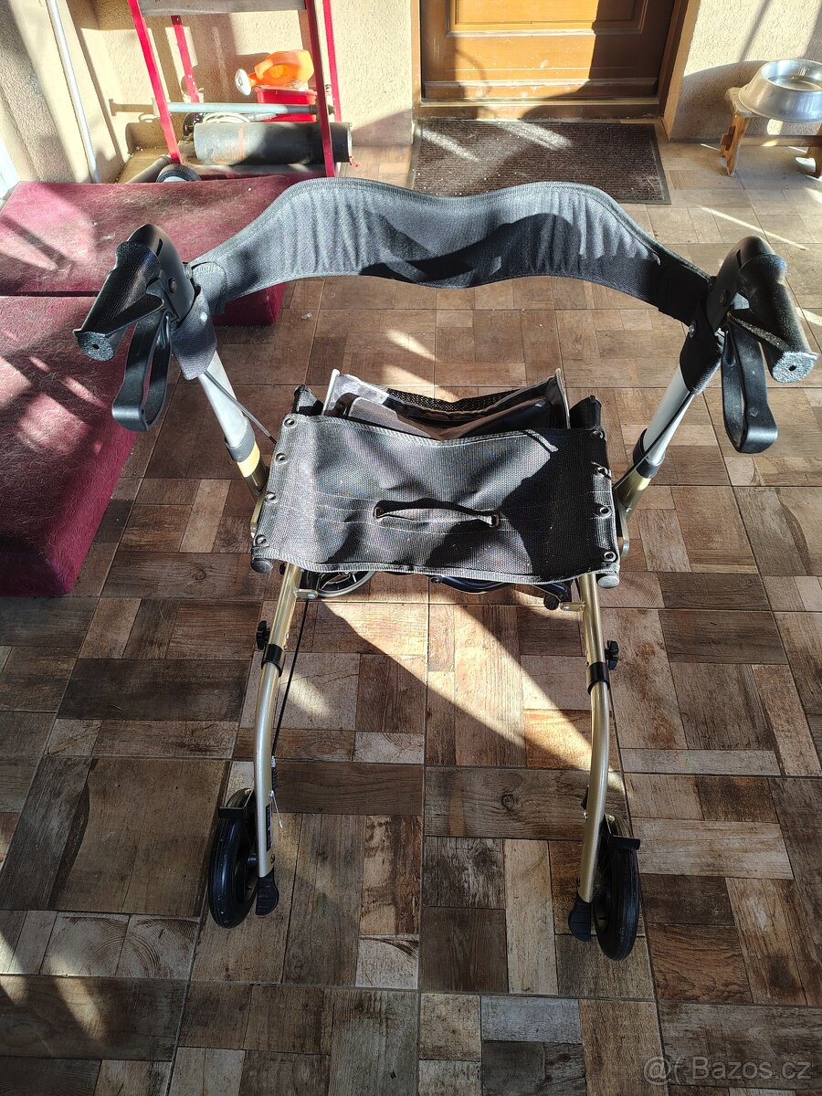 Prodám chodítko DMA. Barva šampaň, skládací, odnímatelná taška. Téměř nepoužitý.