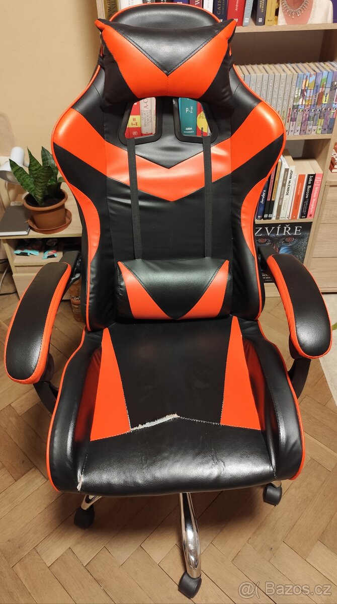 Prodám herní křeslo, asi dva roky staré. V dobrém stavu, viz foto, pouze se lehce páře. Cena 500,-. Osobní převzetí v Holicích u Pardubic. V případě zájmu nebo dotazů pište na mail adamkac@seznam.cz