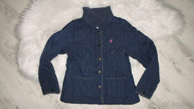 Prodám prošívanou jarní bundu pro holčičku v pěkném nepoškozeném stavu. Zapínání na zip a druky. Barva tmavě modrá. Zn. H&M. Vel. 134. D 45 cm, š 35 cm.
